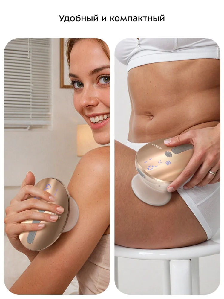 Действие массажера направлено на улучшение кровообращения, тонизирование мышц и кожи, антицеллюлитную профилактику и выведение токсинов. Прибор помогает бороться с растяжками, избавляет от отечности. Также вакуумный массаж улучшает периферическую циркуляцию крови, циркуляцию лимфы, межтканевой жидкости.