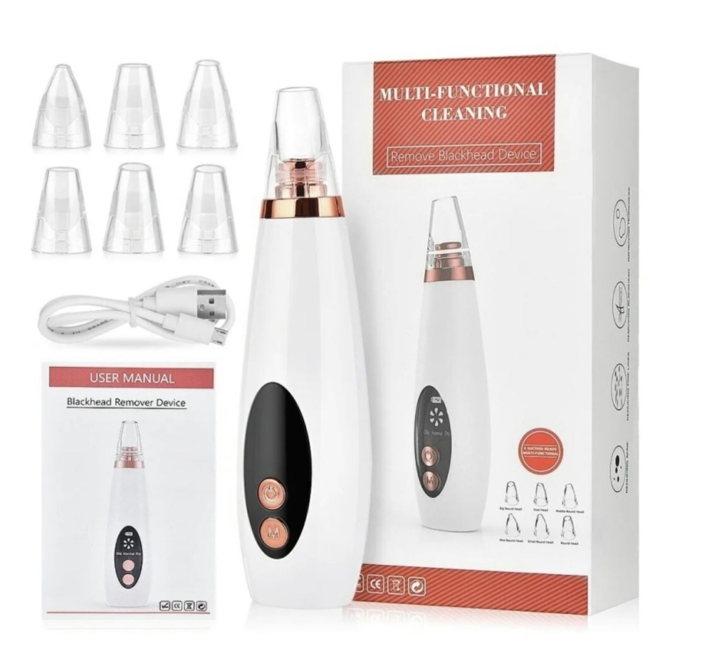 Вакуумный очиститель пор - безболезненный домашний уход за лицом. В приборе для очищение кожи 6 насадок. Преимущество аппарата: уменьшается рубцы, удаляет чёрные точки, помогает при акне, пилинг для лица, удаляет мёртвые клетки, удаляет мимические морщины. Имеется в комплекте зарядка.