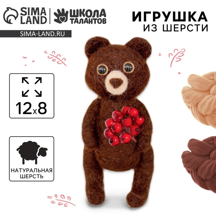 Валяние из шерсти. Игрушка «Медвежонок с ягодами», набор для творчества