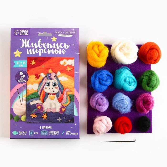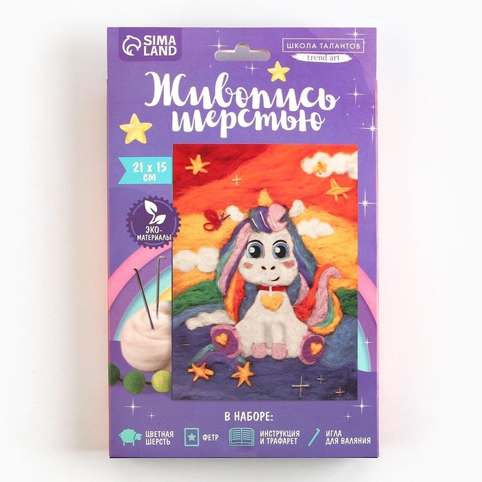 Валяние из шерсти. Картина «Единорожка со звёздочками», А5, набор для творчества