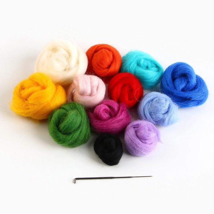 В комплекте вы найдёте лоскуты цветной шерсти, специальную иглу и лист фетра, который будет служить холстом для вашей картины. Дополнительно вам понадобятся ножницы, губка или кусок поролона и немного воды для смачивания пальцев во время работы.