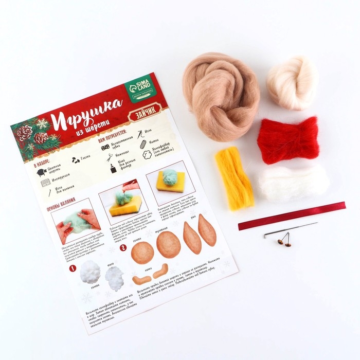 Валяние из шерсти на новый год. Игрушка своими руками «Кролик с подарком», новогодний набор для творчества