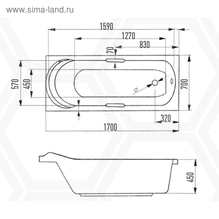 Ванна акриловая Eurolux MIAMIKA, 170x70x40 см, без каркаса и панели