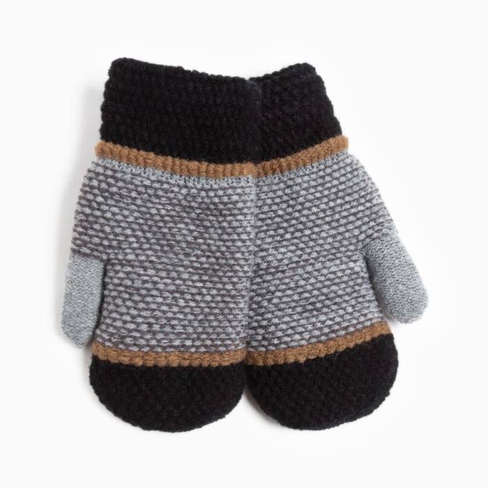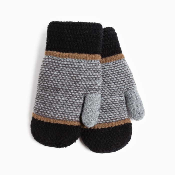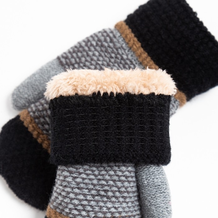 Варежки детские, цвет чёрный/тёмно-серый, размер 16 (8-10 лет)