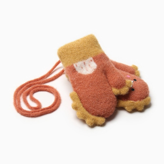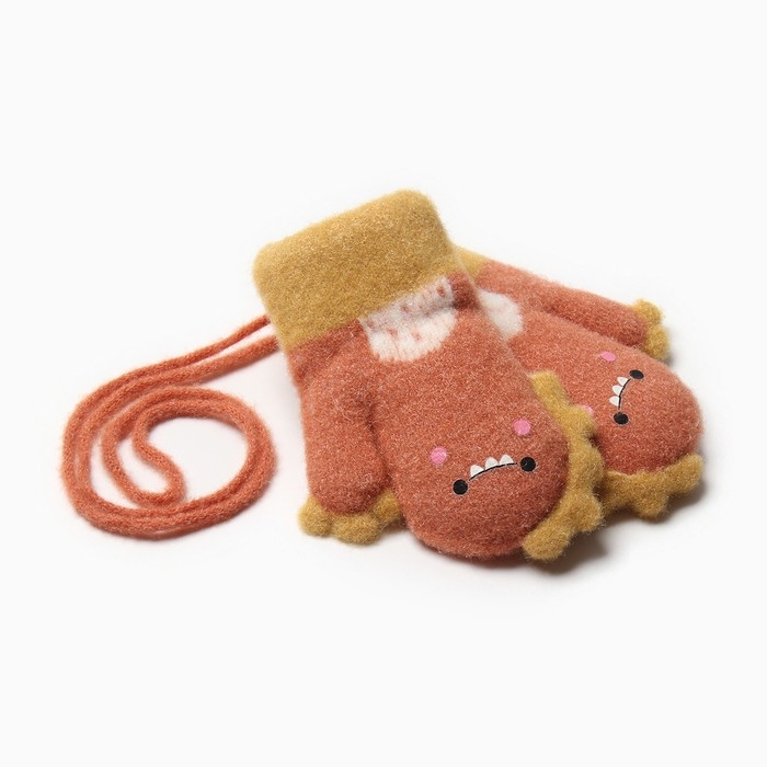 Варежки детские на иск.меху MINAKU динозавр 13 см горчичный