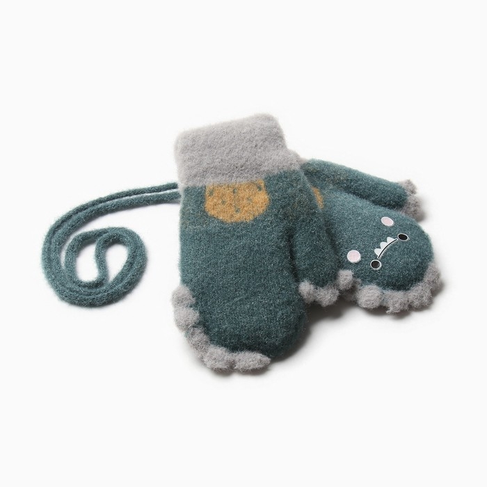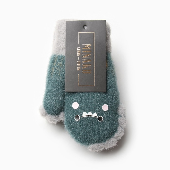 Варежки детские на иск.меху MINAKU динозавр 13 см зеленый