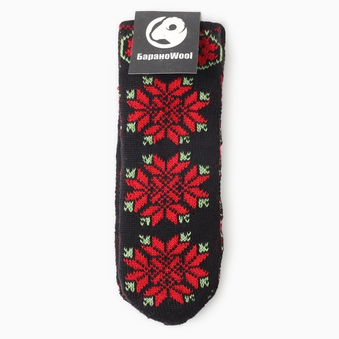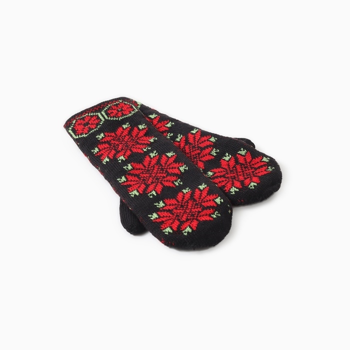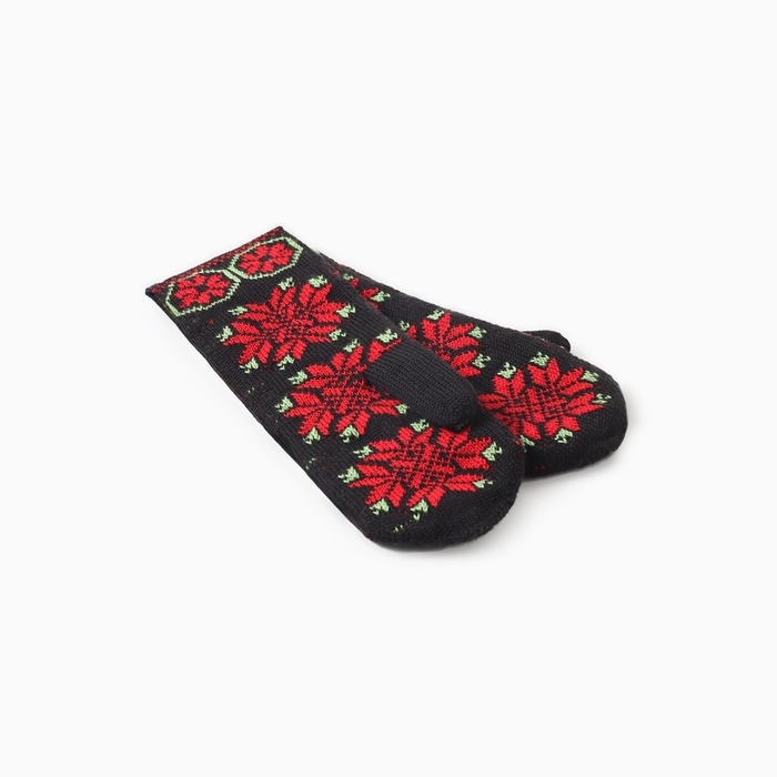 Варежки двойные женские "Орнамент", цвет черный/красный, р-р 18