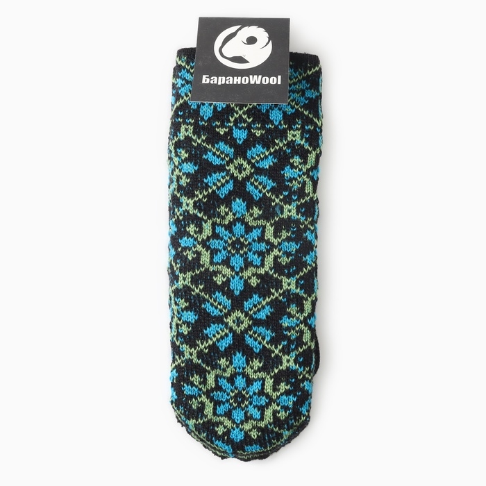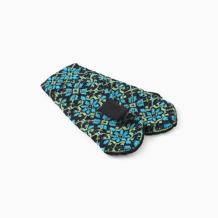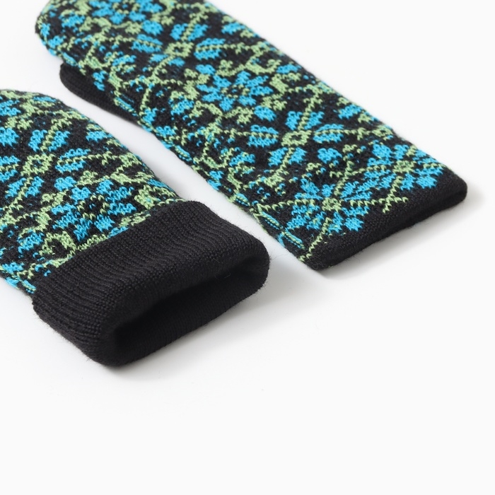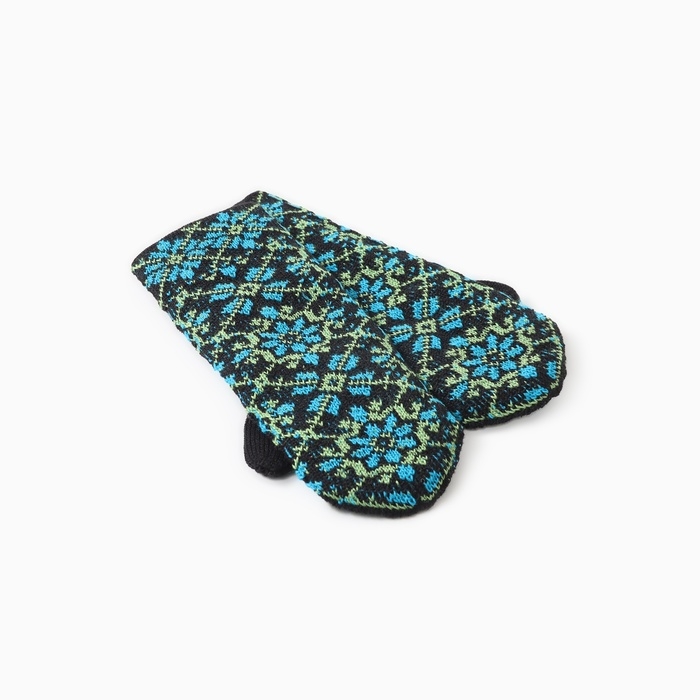 Варежки двойные женские "Орнамент", цвет черный/синий, р-р 18