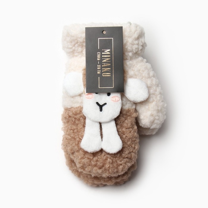 Варежки подростковые MINAKU Барашка двухцветные 24 см цвет коричневый