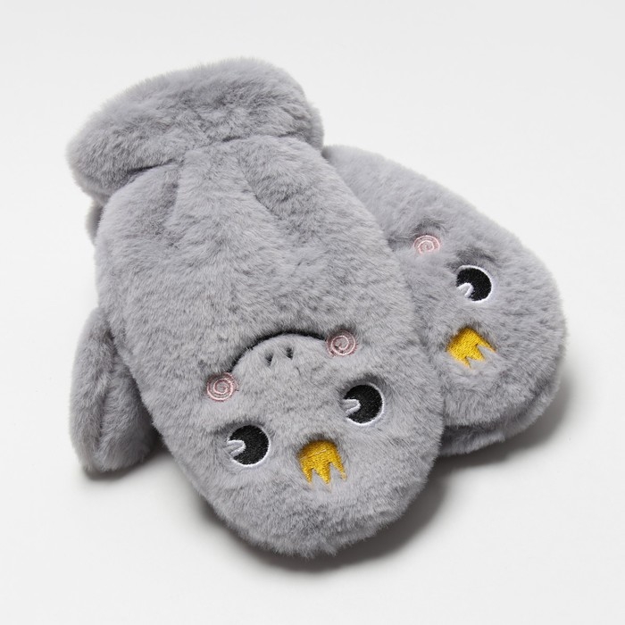 Варежки подростковые на иск.меху MINAKU Корона 19 см серый