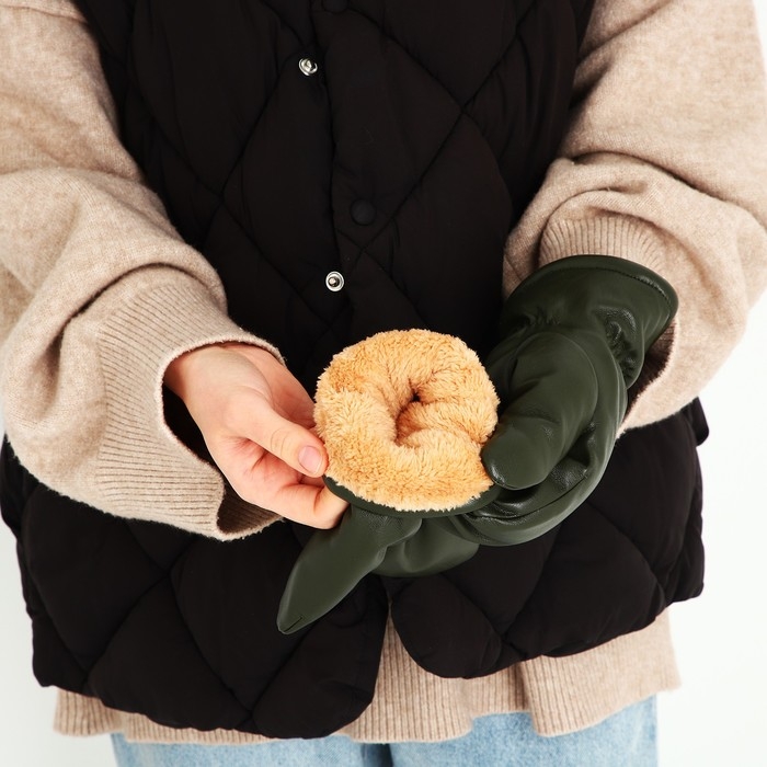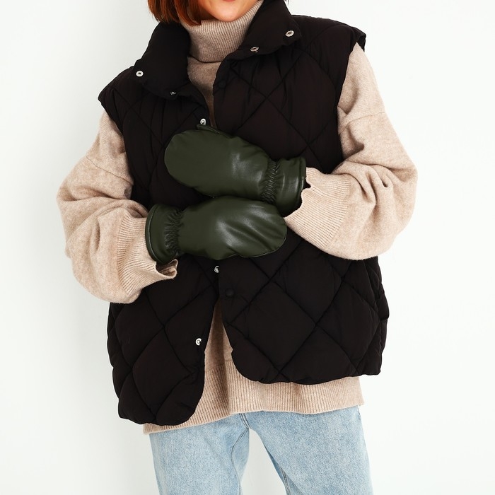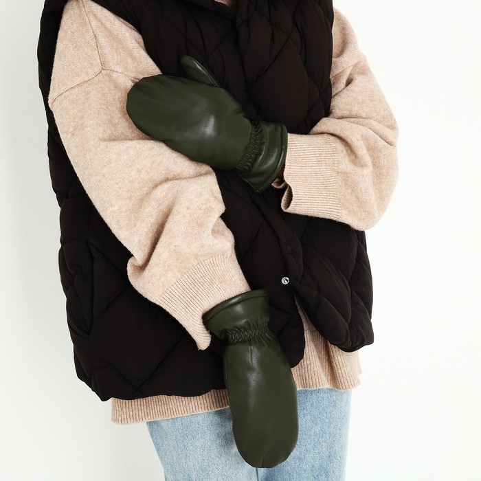 Варежки женские, безразмерные, с утеплителем, цвет хаки