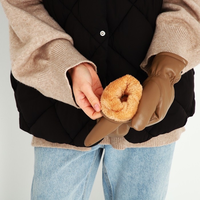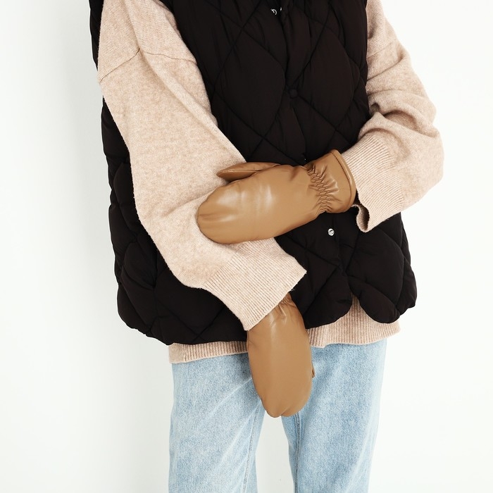 Варежки женские, безразмерные, с утеплителем, цвет коричневый