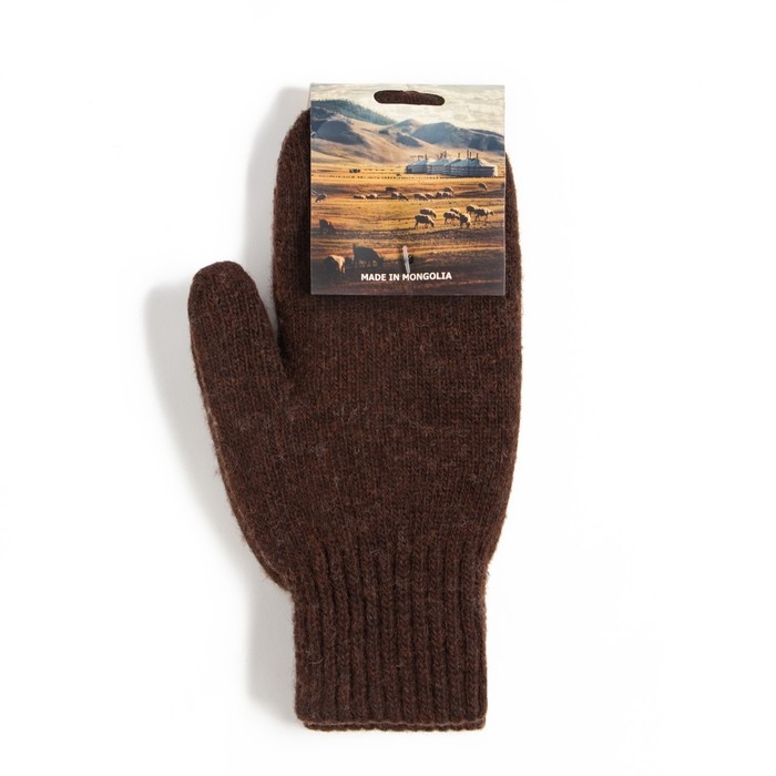 Варежки женские из монгольской шерсти, цвет шоколадный, размер 17-19 (6,5-7,5)