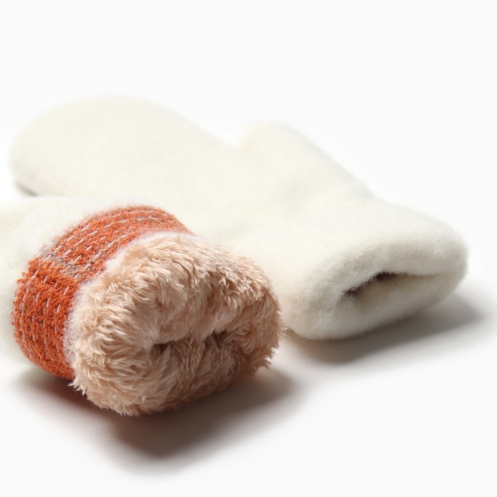 Варежки женские на иск.меху MINAKU гладкие 22 см молочный