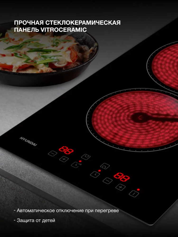 Двухконфорочная встраиваемая электрическая варочная панель Hyundai HHE 3210 BG удачно совмещает простоту управления и широкий функционал. С ней процесс готовки превращается в удовольствие.