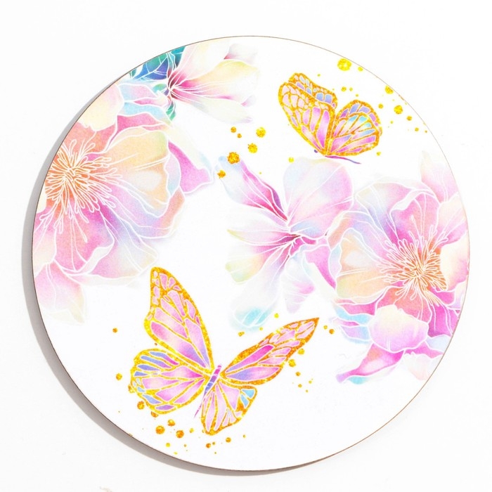 Ваза украшена стильным дизайном с изображением бабочек на фоне нежных цветов.