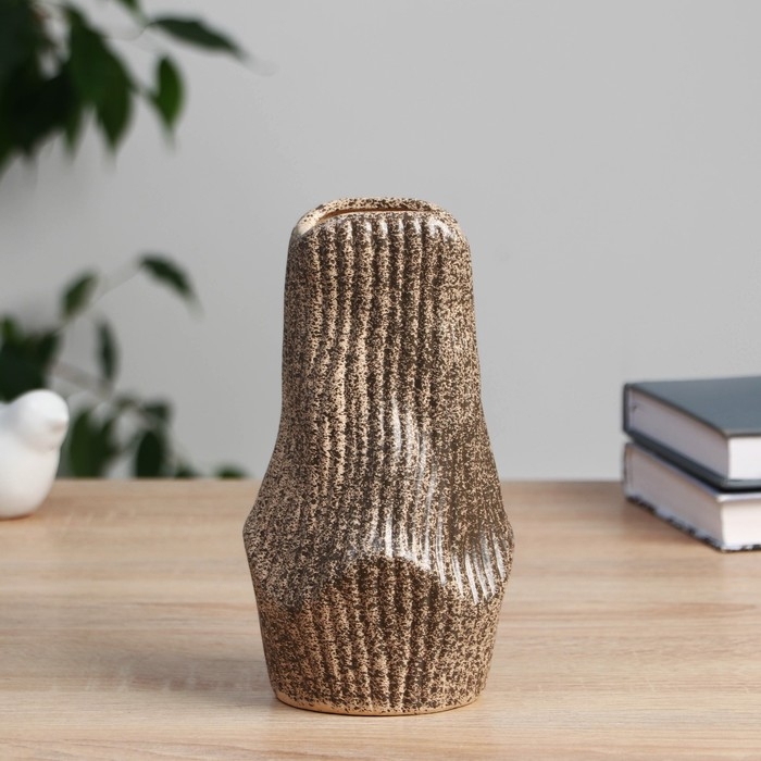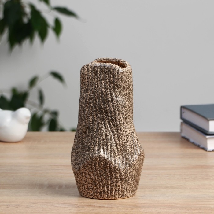 Ваза керамика настольная "Абнер" изгибы, d=6х4см h=17 см, коричневый