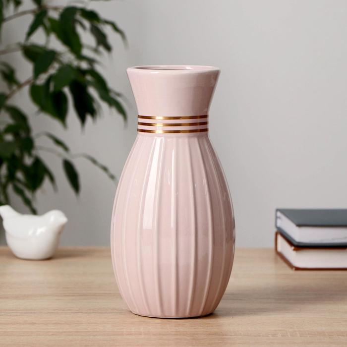 Ваза керамика настольная "Глория" d-8,5 см, 11х22 см, розовый