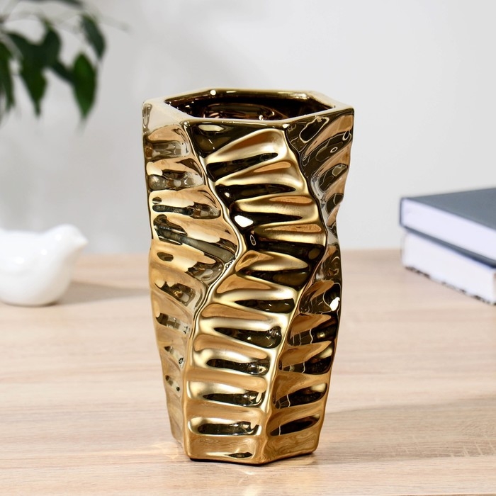 Ваза керамика настольная "Рогнеда" h-20 см d-9 см, золото