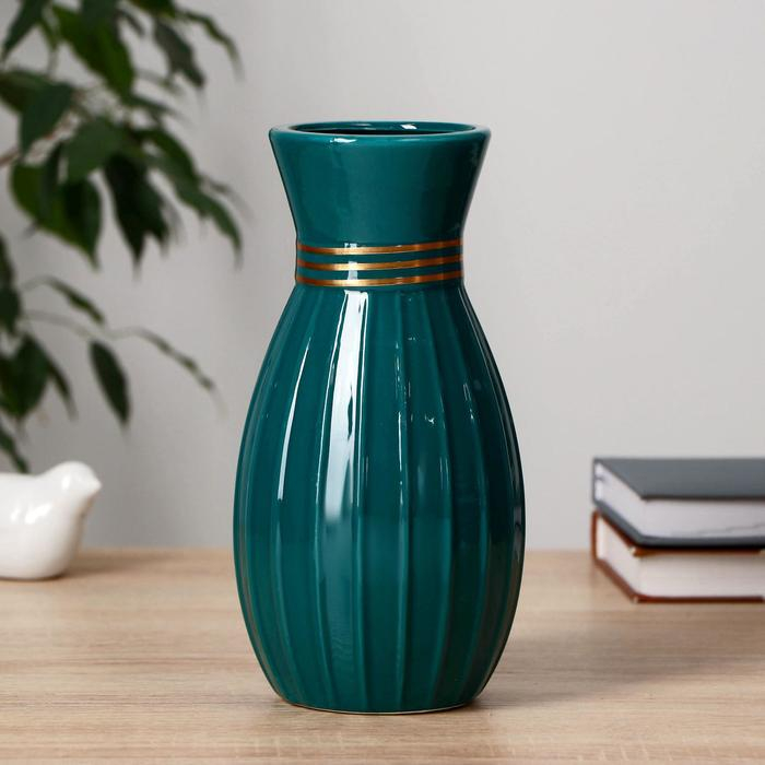 Ваза керамика настольная"Глория" d-8,5 см, 11х22 см, зелёный