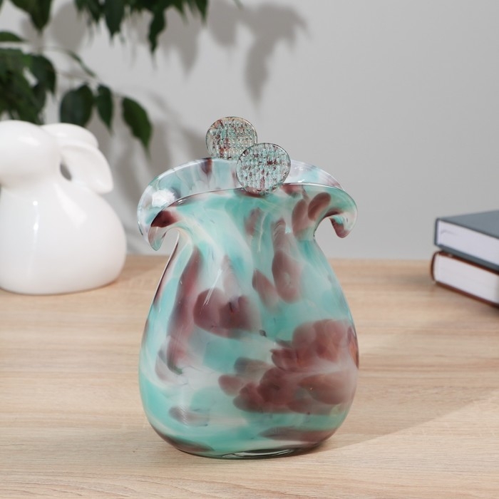 Ваза "Кошелёк" зелёно-марганцевый, (в стеклокрошку) 16см преобразит пространство и как самостоятельный элемент декора. Наполните интерьер уютом!