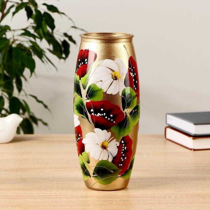 Ваза "Мак и Ромашки" роспись на крашеном стекле, d-7; 10х23 см МИКС