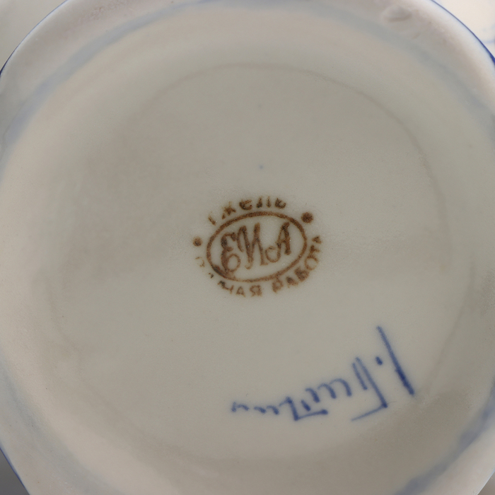 Так появился узнаваемый стиль гжели — синяя пейзажная и растительная роспись, которая соединяется с геометрическим орнаментом на белоснежном фоне. Мастера расписывают каждый предмет только вручную.