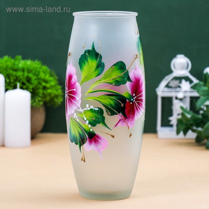 Ваза "Огонек" роспись на матовом стекле, d-7; 10х23 см