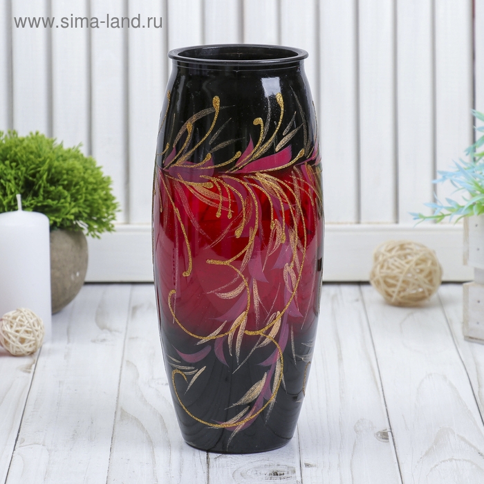 Ваза "Рубин" роспись на крашеном стекле, d-7; 10х23 см