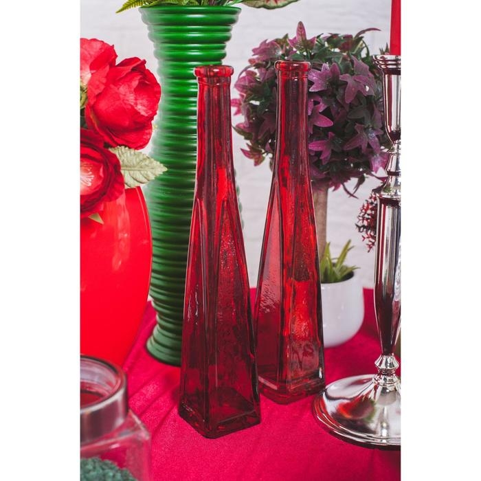 Ваза "Стрелка" четырехгранная, красная диам.отверстия=2см, H=29х5,5см, V=0,2л