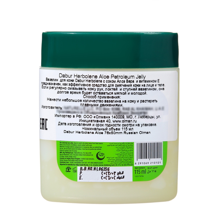 Вазелин косметический Dabur Herbolene с соком алоэ вера и витамином Е предназначен для использования как эффективное средство смягчения кожи лица и тела. При регулярном использовании кожа рук, ступней и тела будет долгое время оставаться мягкой и молодой.