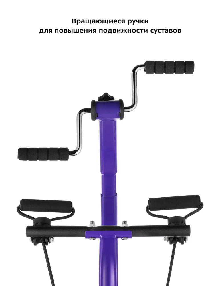 Тренажер оснащен рулем с вращающимися ручками для тренировки рук. Сопротивление вращения ручек руля можно регулировать. Упражнения с рулем помогают повысить подвижность суставов плеч, локтей и запястий.