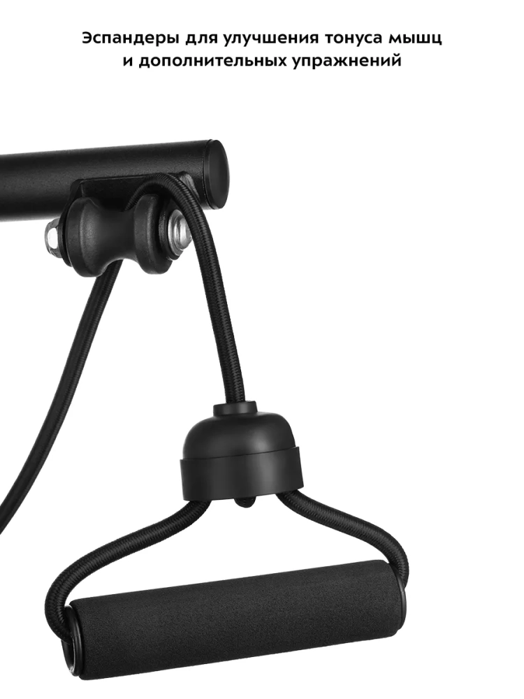 Велотренажер также имеет в комплекте два эспандера для дополнительных упражнений на руки. Упражнение на растяжку с эспандерами помогает укрепить и привести в тонус мышцы рук, груди и спины.