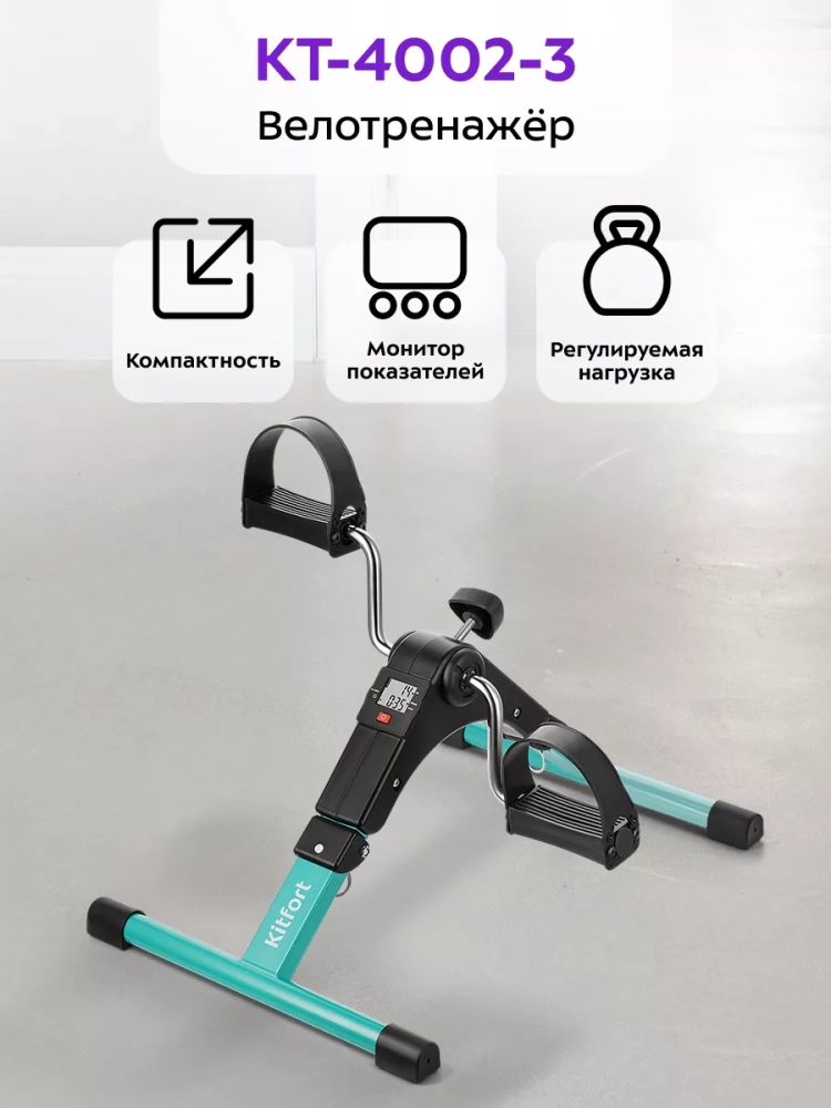 Велотренажер Kitfort KT-4002 — отличная альтернатива велосипеду. Теперь вам не нужно ждать хорошей погоды, ведь велотренажер можно использовать дома! Велотренажер имеет небольшой размер, поэтому его можно поставить в любое удобное для вас место.