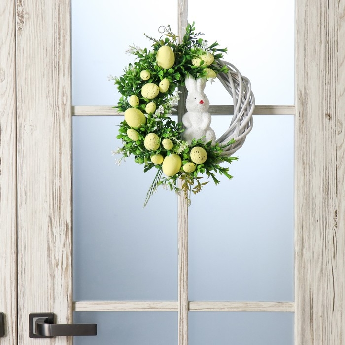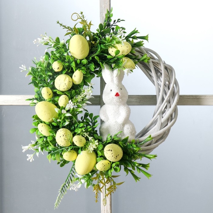 Венок на дверь интерьерный "Зайчик пасхальный" жёлтый d=29 см