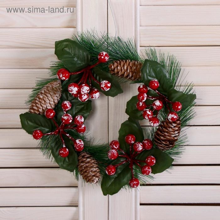 Венок новогодний d-16 см "Зимнее волшебство" ягодки и шишки