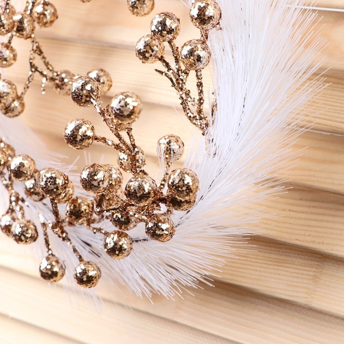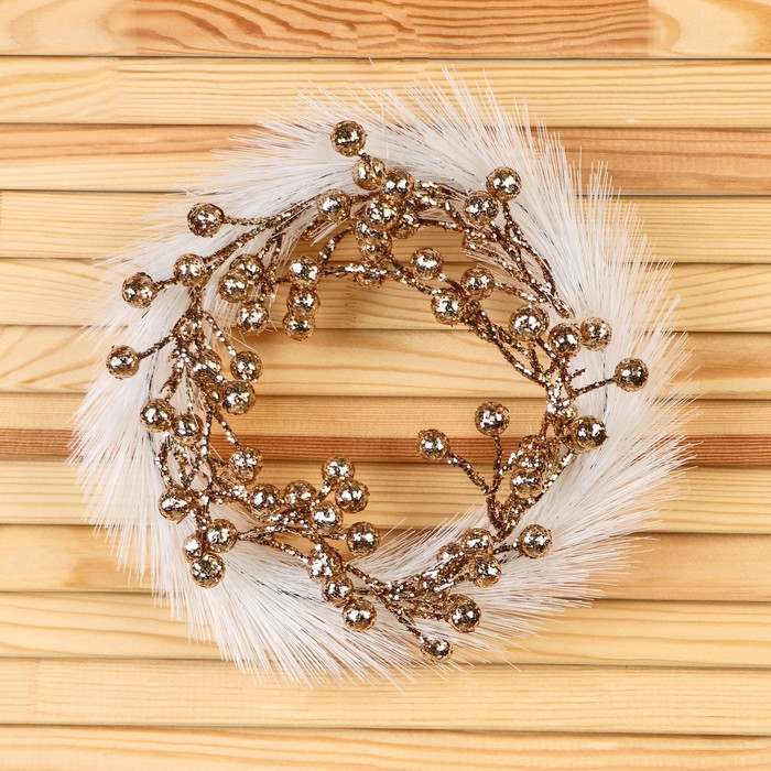 Венок новогодний d-20 см "Элит" ягодки, бело-золотой