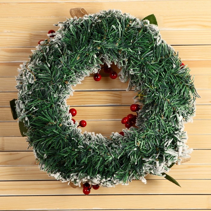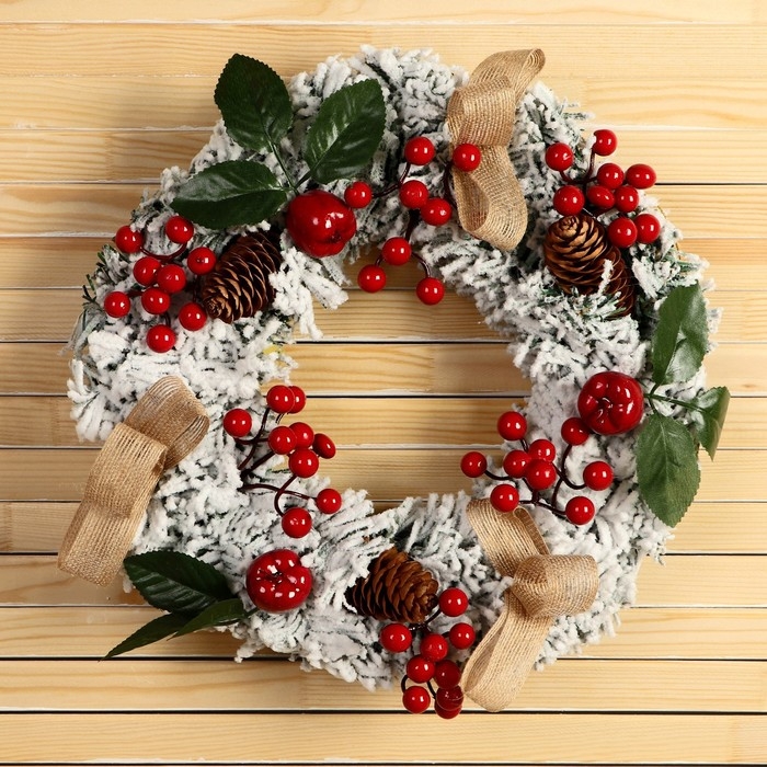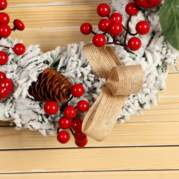 Венок новогодний d- 29 см "Уютная сказка" ягоды на веточках шишки снег