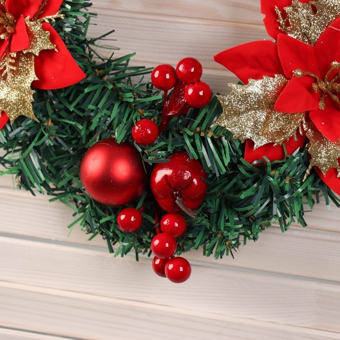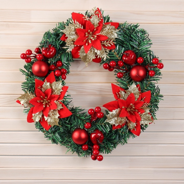 Венок новогодний d-30 см "Лесной фестиваль" цветы ягоды