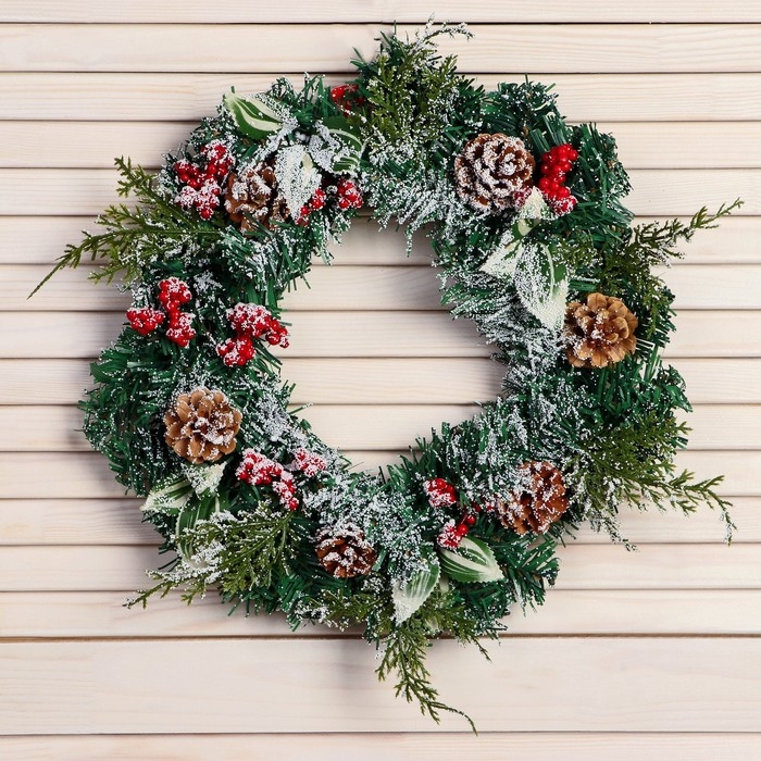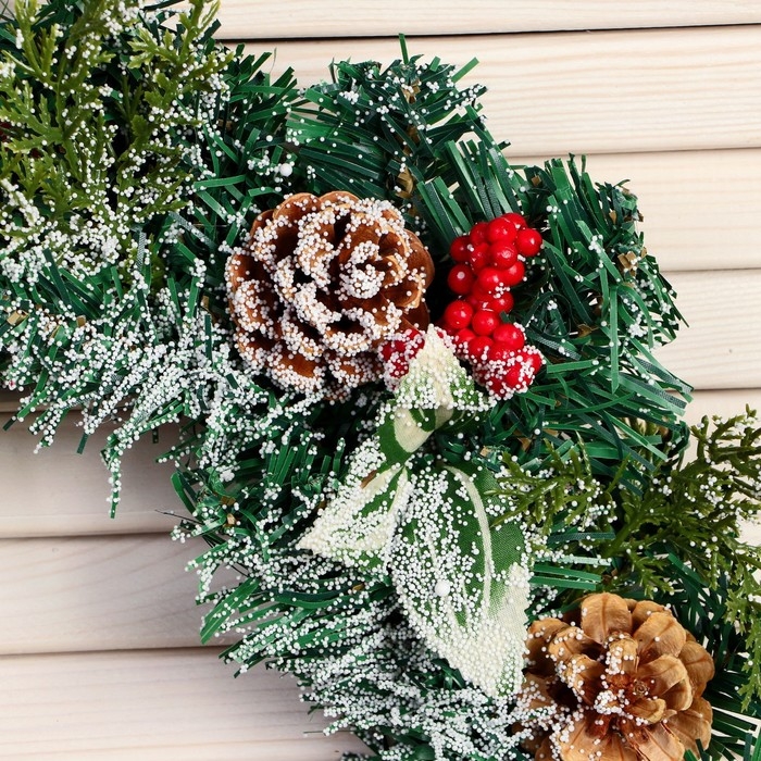 Венок новогодний d- 30 см "Уютная сказка" листья ягоды шишки