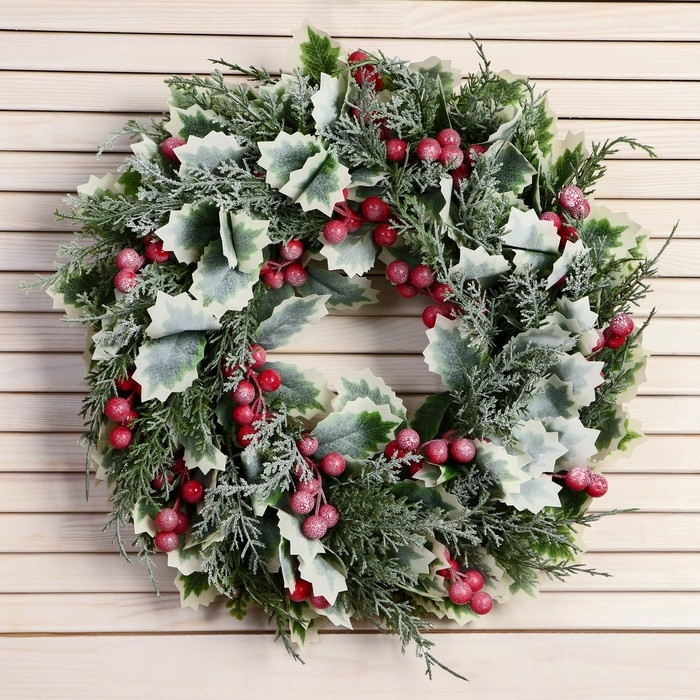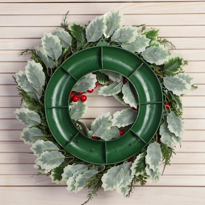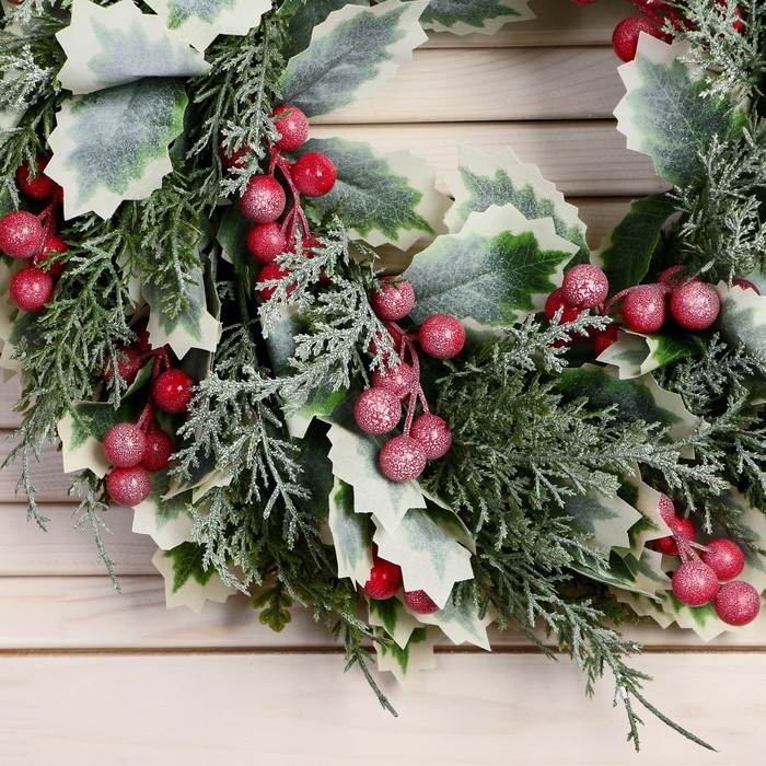 Венок новогодний d- 33 см "Уютная сказка" листочки ягоды зелень