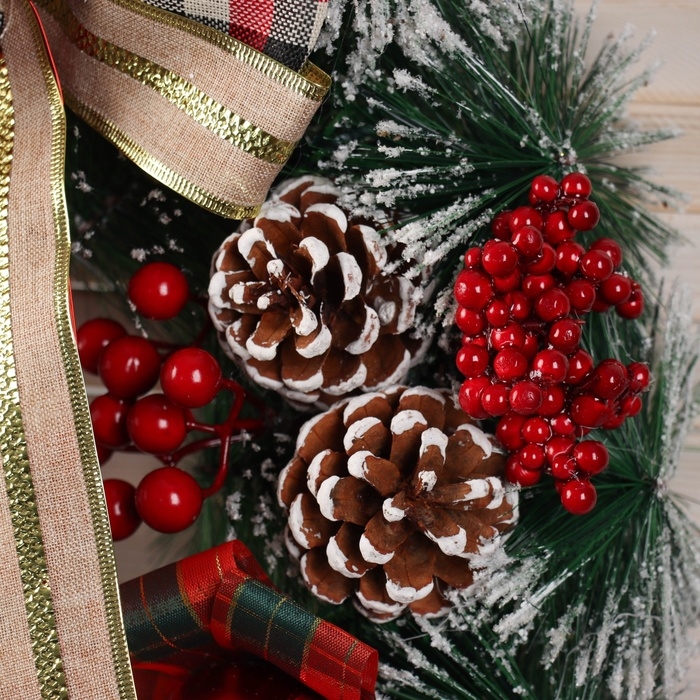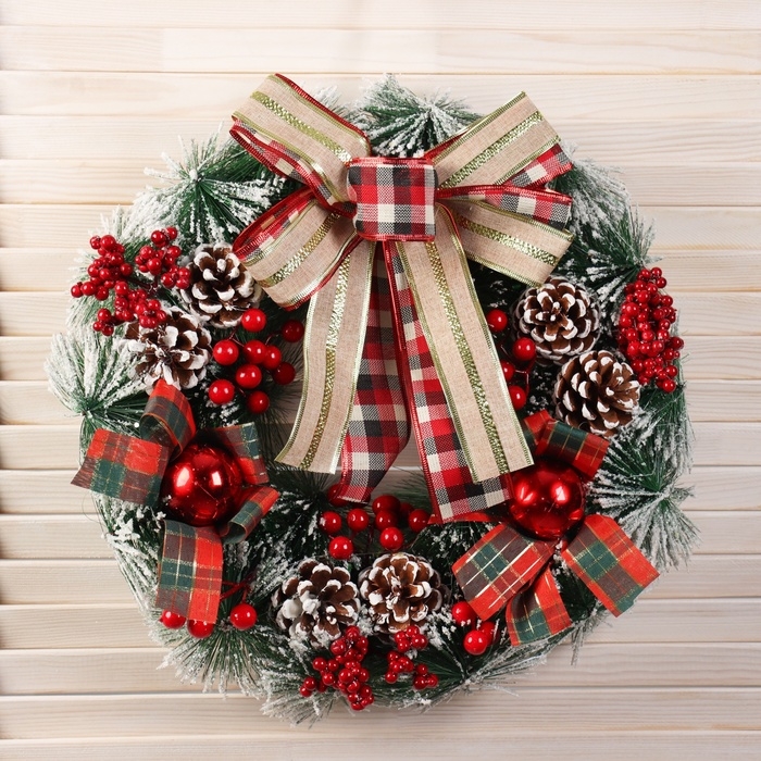 Венок новогодний d-40 см "Яркая сказка" банты ягодки шишки