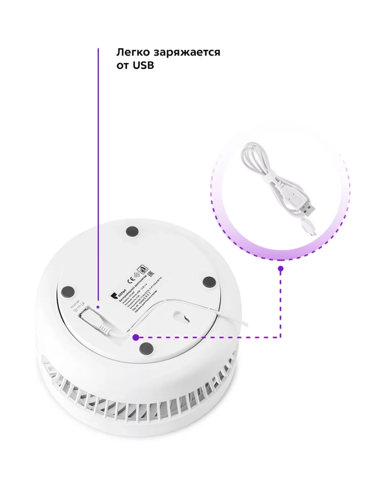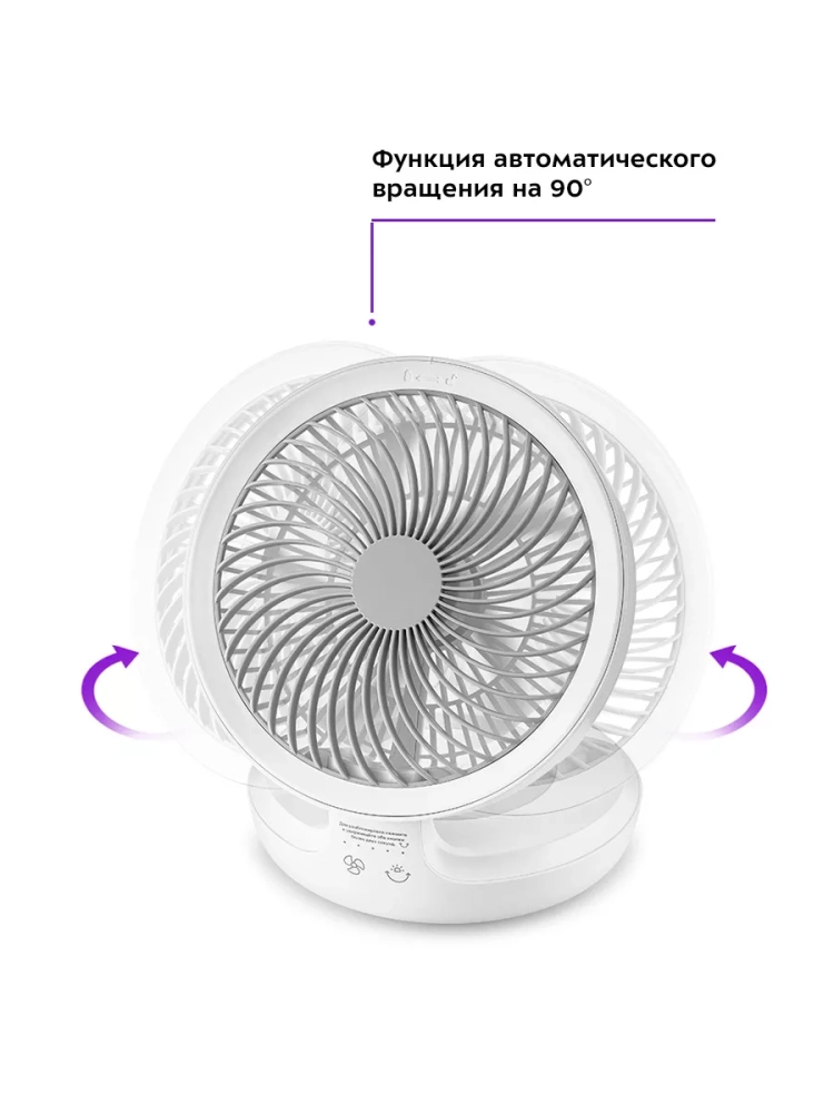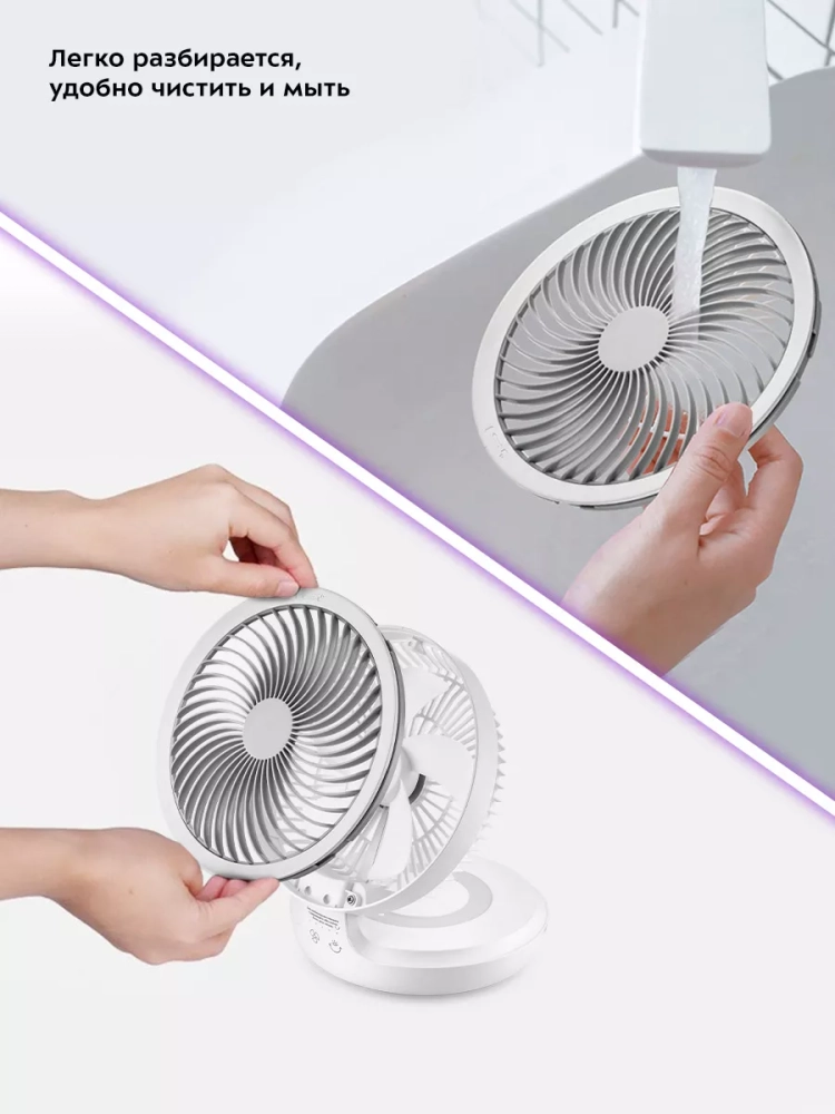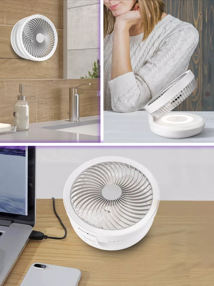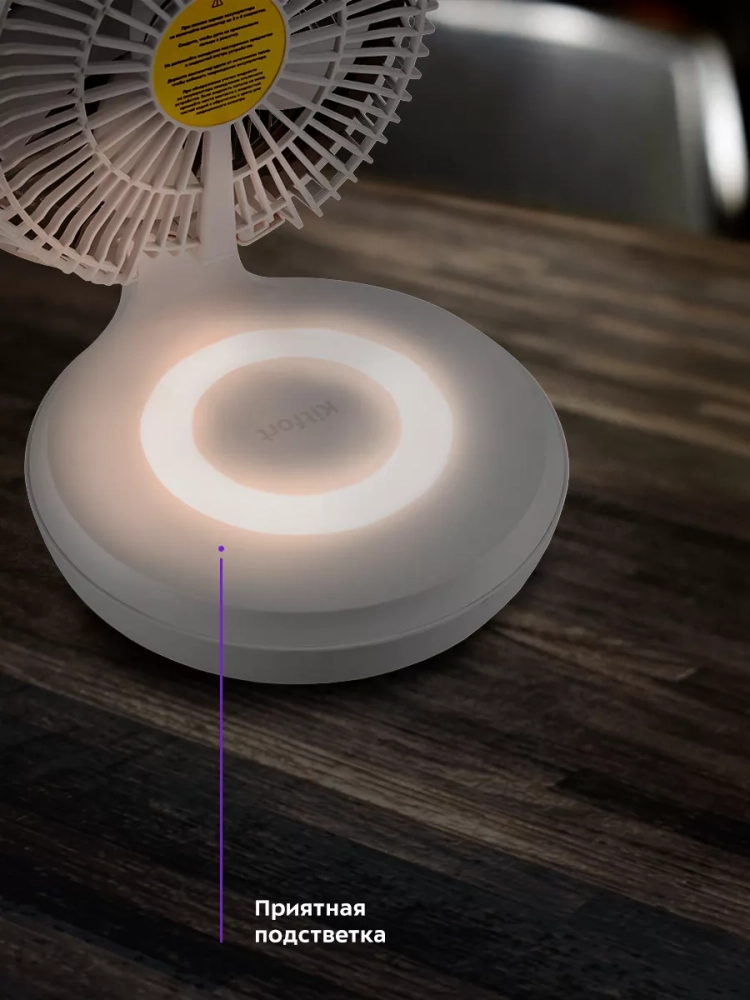 У вентилятора есть подсветка основания. Вентилятор с мягким теплым светом превращается в светильник или ночник. А благодаря его портативности вентилятор-ночник можно включить ночью в палатке или в машине, создавая уютную романтичную атмосферу на природе.