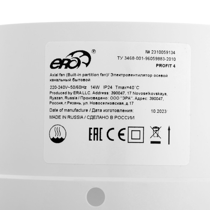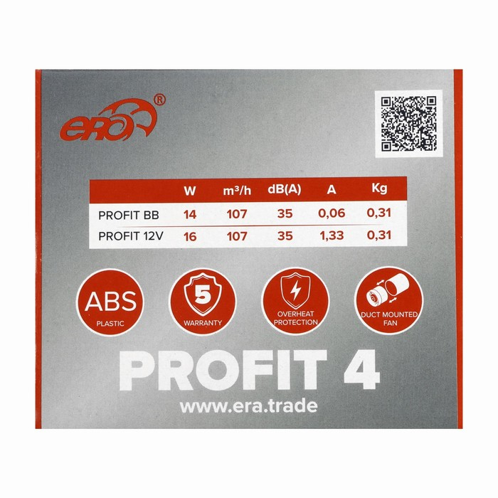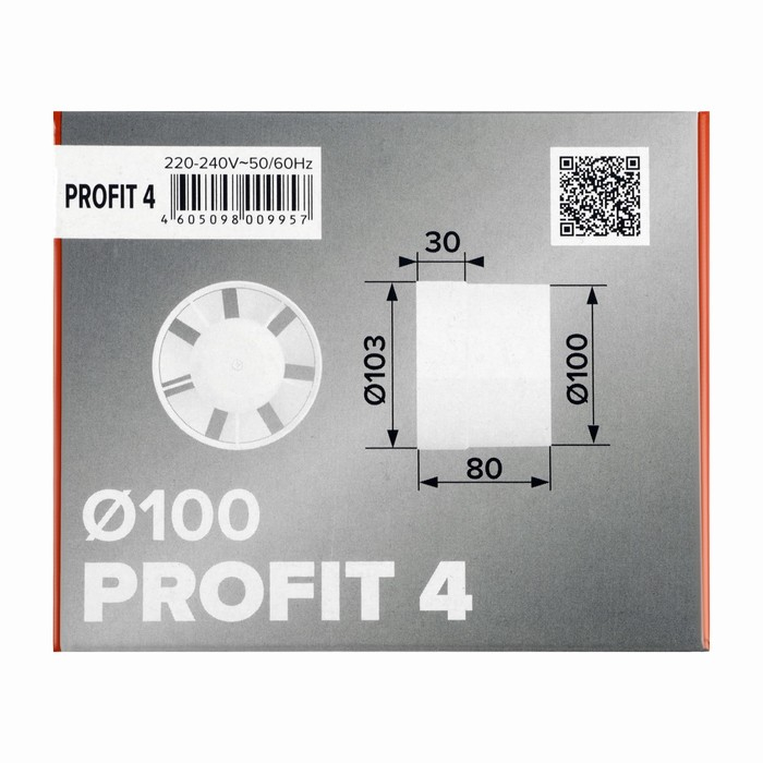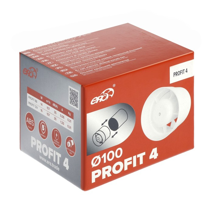 Вентилятор вытяжной ERA PROFIT 4, d=100 мм, 220‒240 В, канальный
