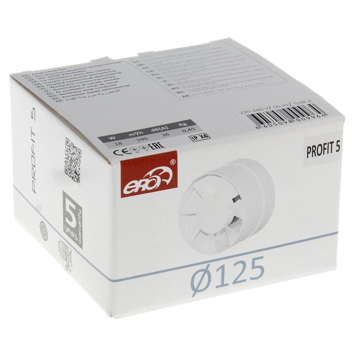 Вентилятор вытяжной ERA PROFIT 5, d=125 мм, 220‒240 В, канальный