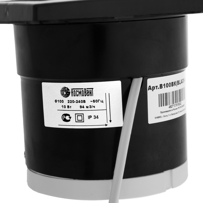 Вентилятор вытяжной "КосмоВент" В100ВК-ок, d=100 мм, 10 Вт, 40 дБ, 105 м³/ч, выкл, обр.клап