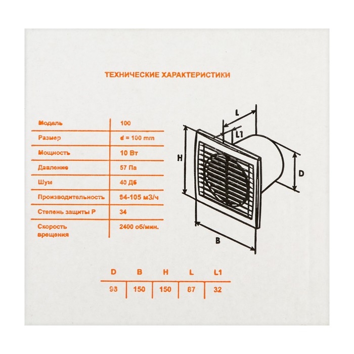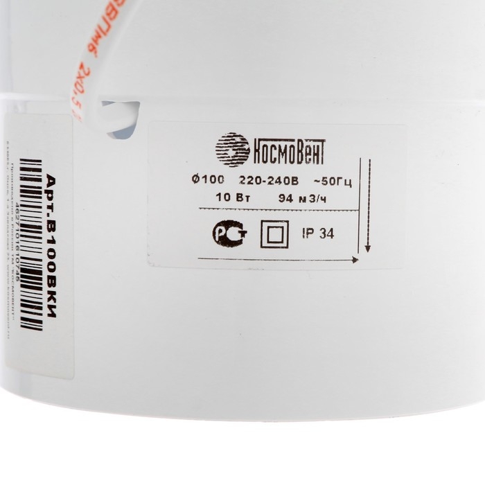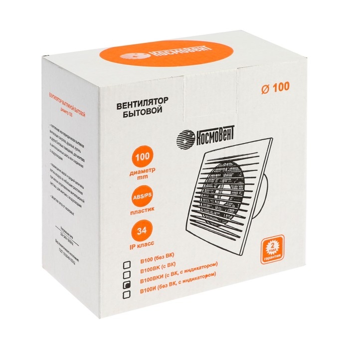 Вентилятор вытяжной "КосмоВент" В100ВКИ, d=100 мм, 10 Вт, 40 дБ, 105 м³/ч, выключ, индикатор