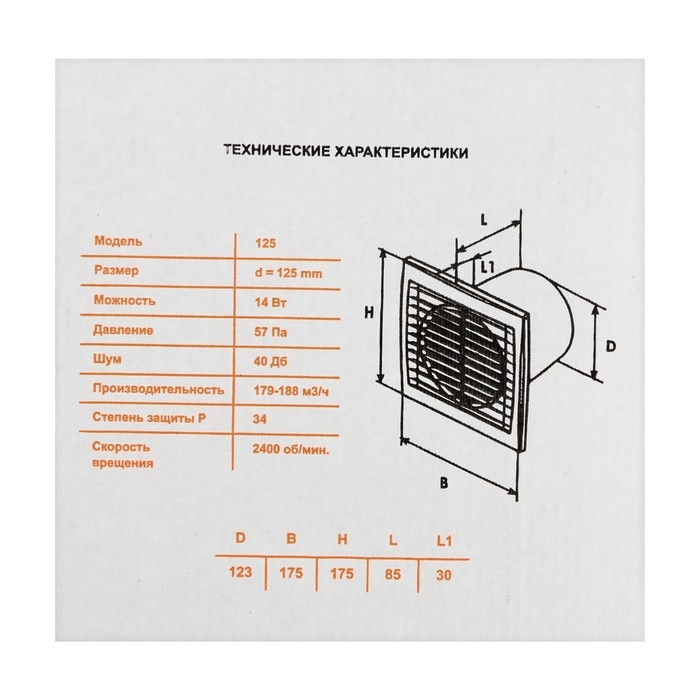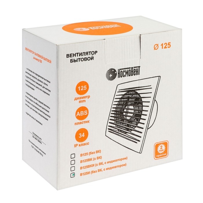 Вентилятор вытяжной "КосмоВент" В125И, d=125 мм, 12 Вт, 40 дБ, 188 м³/ч, без выкл, индикатор