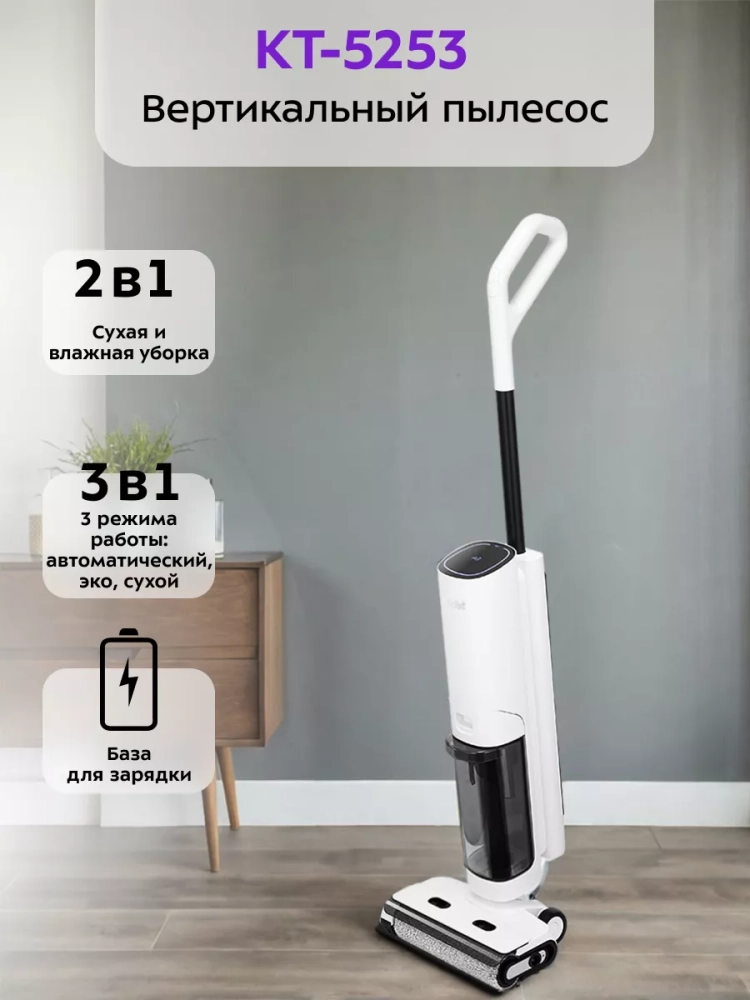 Вертикальный беспроводной моющий пылесос КТ-5253
