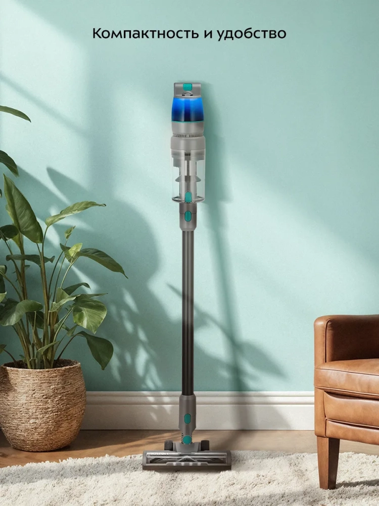 Во время работы пылесос благодаря своей маневренности поможет легко убраться в узком коридоре или комнате, заполненной различными предметами. У пылесоса есть функция вертикальной парковки, поэтому пылесос удобно ставить в перерывах во время уборки.